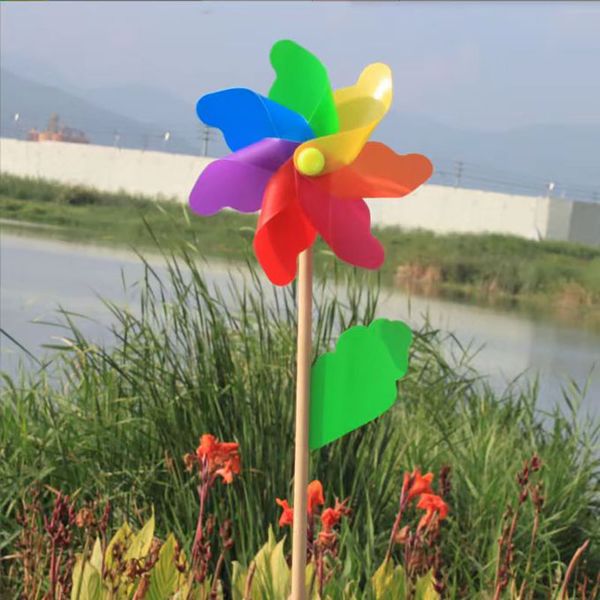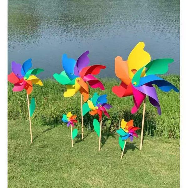 七彩風車戶外裝飾節慶景點公園兒童手握旋轉木質彩色風車