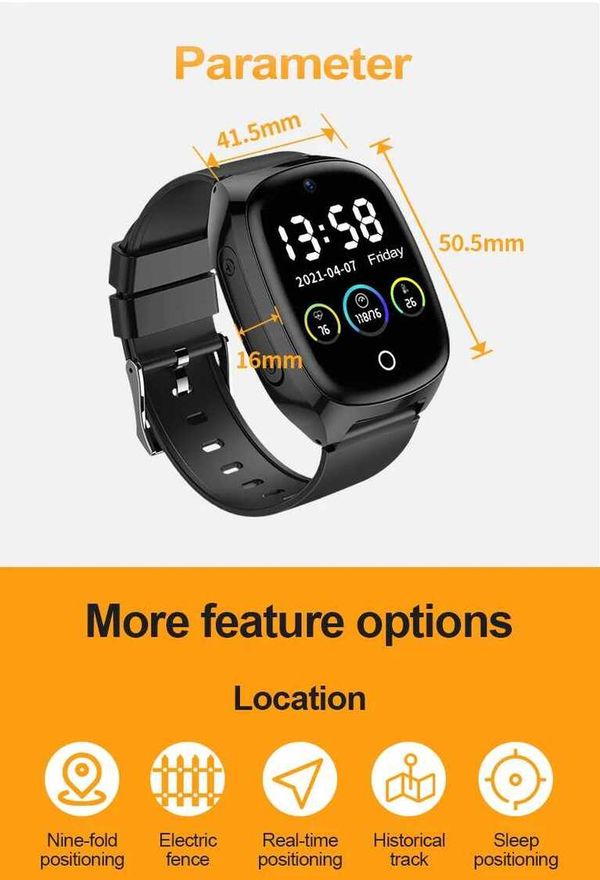 D300 GPS 追蹤器定位器 4G 智慧手錶 適用於老年女性男性智慧手錶 帶 SOS 呼叫心率血壓視訊通話規格:功能描述GPS+LBS+WiFi定位多重定位功能IP67防塵防水等級4G 網路覆蓋僅支援 Nano 卡手錶語言:中文、英文、俄文觀看體重58克措施50.5*41*16(高)毫米監視器1.54 吋 IPS處理器ASR3603觸控螢幕1.54吋G+F電容觸控螢幕電池容量650毫安培時頻帶FDD:B1/B2/B3/B5/B7/B8/B20 WCDMA:B1/B2/B5/B8 GSM:BandB2/B3/B5/B8護套材料環保LDS材料喇叭609腔體揚聲器,音質優良重力感測器支援相機30 WI/O介面四點磁吸式功能描述時區校準不定位的情況下,使用RTC時鐘。上線後,使用者可以透過APP手動設定對應時區,更新手錶目前時區。休眠預設手動取得定位設備預設定位模式為睡眠模式。當進入地圖介面時,APP下達立即定位指令後,裝置會自動更新位置或手錶會立即上傳一次目前位置。固定上傳定位頻率(間隔)為10分鐘或1小時。終端機會依照目前設定的定位間隔取得目前位置並上傳至資料平台中心。使用者可以依照自己的需要,透過APP設定不同的定位間隔(定位間隔越短,手錶待機時間越短)。低電量警報當電池電量低於20%時,會向APP客戶端發出警報。電子圍籬警報支援設定圓形區域電子圍欄,當手錶離開預設區域時觸發越界警報(平台實現相關演算法)。SOS 警報在設備正常在線的情況下,長按開關/SOS鍵5秒,可執行SOS警報功能。當無人回應時,手錶會向3位緊急聯絡人發出兩輪求救電話。若3位緊急聯絡人中有人接聽,則停止循環撥號,並同時向3位緊急聯絡人發送求助短信,以快速獲得援助。視訊通話可實現APP客戶端與手錶之間的視訊通話功能聯絡方式在APP中新增聯絡人(最多支援15個聯絡人)撥號功能自主撥號介面(支援短號互相撥號,不支援設定手機號撥打短號,因為NO群組)微聊天透過GPRS資料傳輸,語音對講傳輸時間約15秒心率血壓PPG光感測測量技術測量體溫熱轉印技術(選購功能)睡眠監測應用程式設定睡眠狀態檢測Unlock passwordUnlocking the password can protect the device information more safely.Take a pictureSupport watch selfie or APP remote photo takingVoice timeElderly people with poor eyesight can press the time key to know the time without looking at it.Step countingThe equipment can record the number of exercise steps of the day.Sedentary reminderTurn on sedentary reminder, and the device will remind you to exercise.Weather forecastSupport viewing weather conditionsRefuse to answer calls from strangersPhone numbers other than the phone book cannot be dialed into the watch. [Except for VoIP]Alarm clockThe APP sends this command, and the watch will ring for one minute for easy searching. Press any key to stop ringing.Remote shutdownThe watch can be turned off remotely through the APP (the watch can be turned off and reset after being turned on and working normally by pressing the power-on button for 10 seconds)Remote monitoringSet the monitoring number. After monitoring is turned on, the watch actively dials the set number. The watch can't hear the sound of the mobile phone, and the mobile phone can monitor the watch.Historical trackView the 90-day historical track.Multiple guardianshipSupport multi-person login APP viewingFirmware upgradeThe Firmware of the watch can be upgraded through the PC-side upgrade tool.Electrical parameters650MA~280mAMobile: 2.45mA, Unicom: 2.52mA, Telecom: 2.24mA300mA~2H~4 days or so (10 minutes/positioning interval)GPS parameters1.57542GHz(L1)~30s (outdoor is empty)< 15s (outdoor is empty)< 2s (outdoor is empty)5m (typical)0.1m/s (typical)-148dBm-165dBmGSM parametersFDD: B1/B2/B3/B5/B7/B8/B20WCDMA:B1/B2/B5/B8GSM: BandB2/B3/B5/B8Tcp/ip protocolPictures: