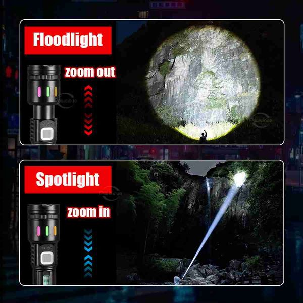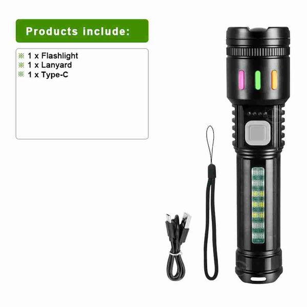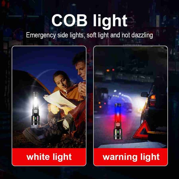 全新強光 LED 手電筒 超亮 USB 充電式便攜式 COB 手燈 戶外釣魚露營變焦手燈