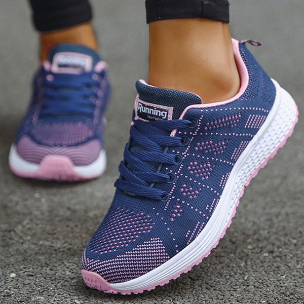 女士新款運動鞋 透氣時尚運動鞋 加大尺寸 女士運動鞋 網眼布料 繫帶女鞋 女鞋