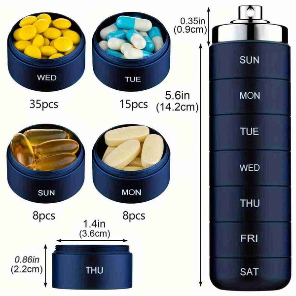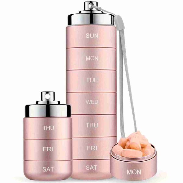 7個金屬藥盒收納盒,可堆疊便攜防水旅行藥盒,大號鋁合金旅行藥盒