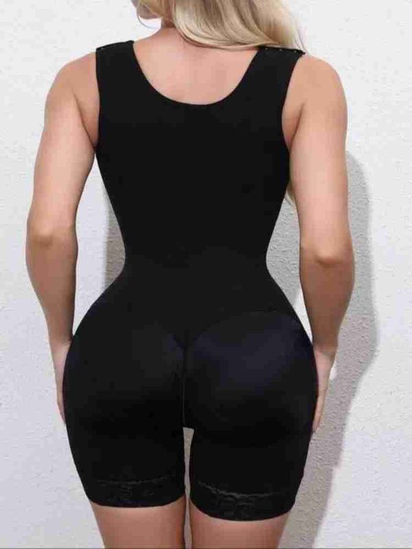 女士蕾絲邊塑身連身衣 - 收腹束身衣,配有可調式肩帶和拉鍊,黑色,舒適