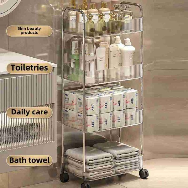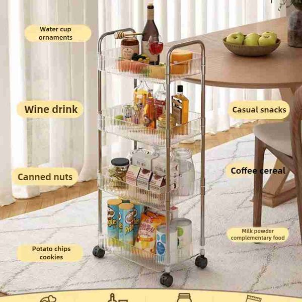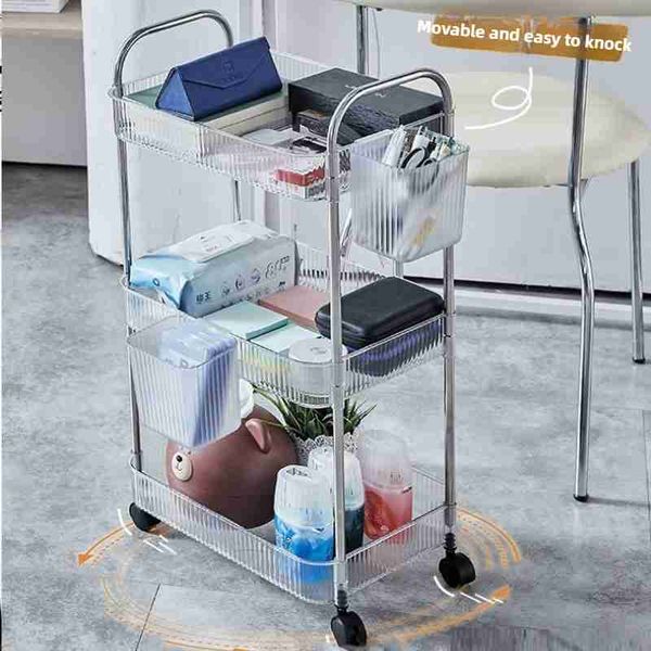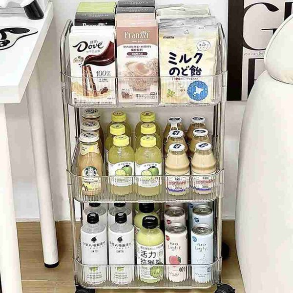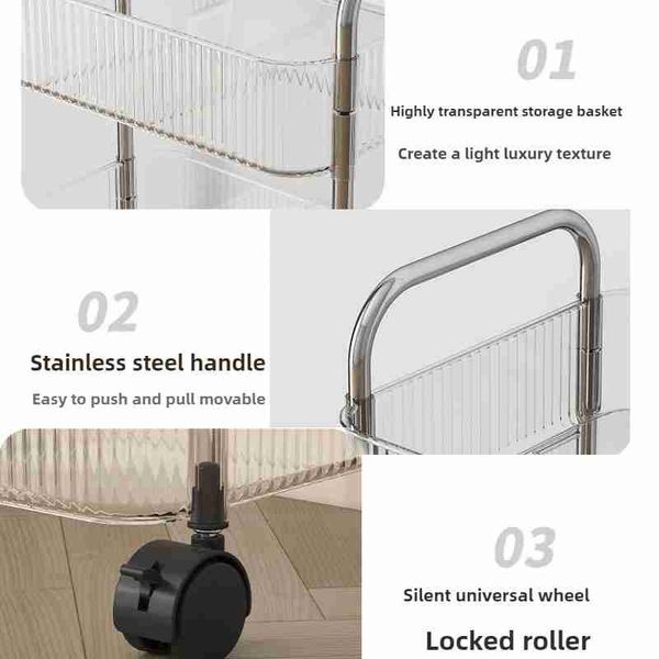行動貨架帶輪儲物架手推車透明壓克力滾動推車家用手推車零食化妝品雜物收納架