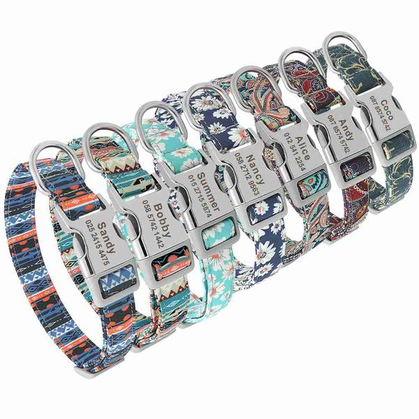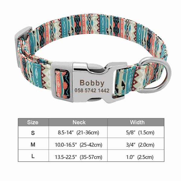 個人化狗狗配件項圈尼龍印花寵物幼犬項圈狗狗ID項圈免費刻ID,適用於小型、中型、大型犬