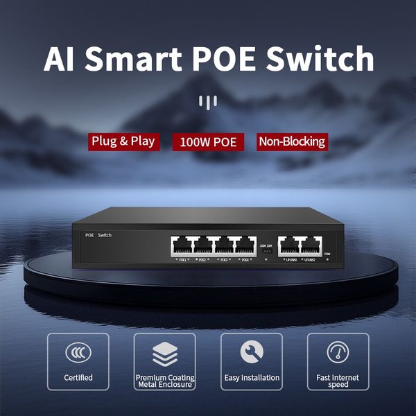 4/6/8 連接埠 POE 交換器 100Mbps 智慧型 IP 交換器 POE 標準 RJ45 注入器切換器帶撥號碼適用於 IP 攝影機/NVR/無線 AP