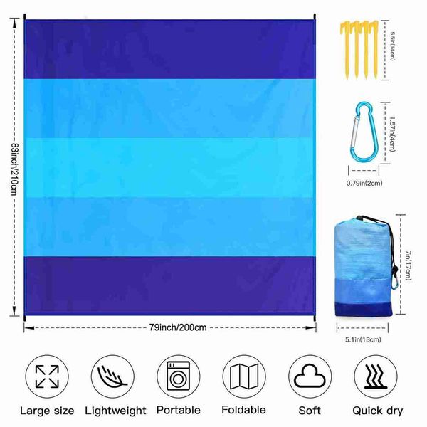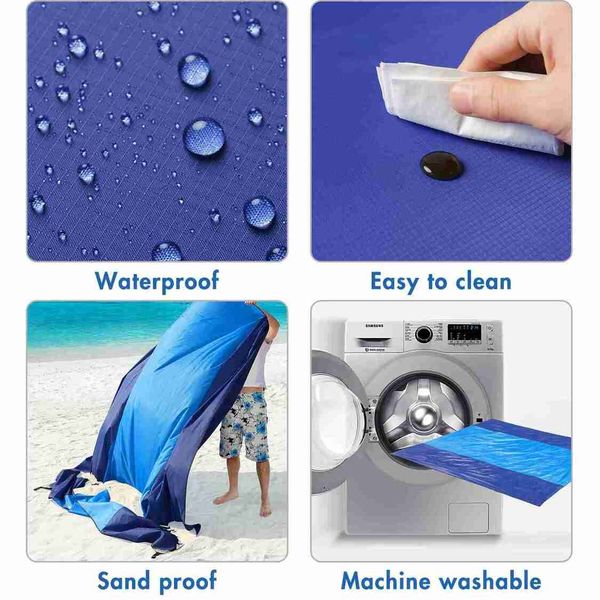 超大防水沙灘毯,適合 4-7 位成人,輕便,防沙野餐墊,適合海灘、旅行、露營、健行