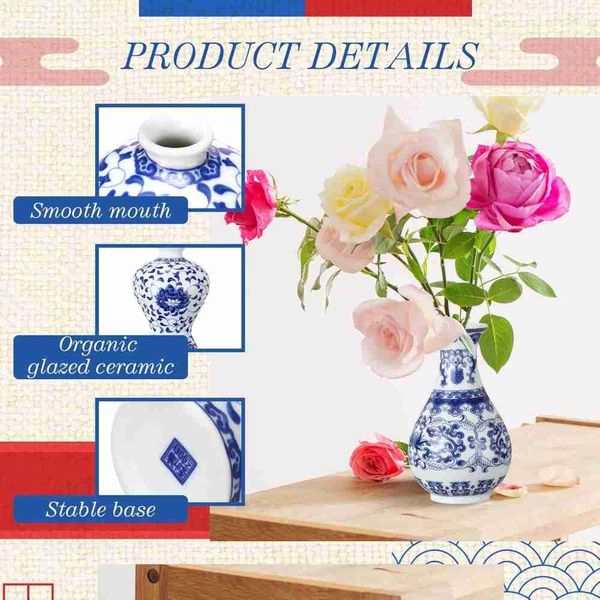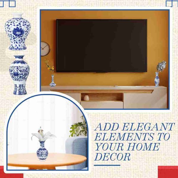 青花瓷花瓶,中國風花瓶陶瓷東方花瓶手工中國花瓶套裝適用於家庭辦公室桌面裝飾