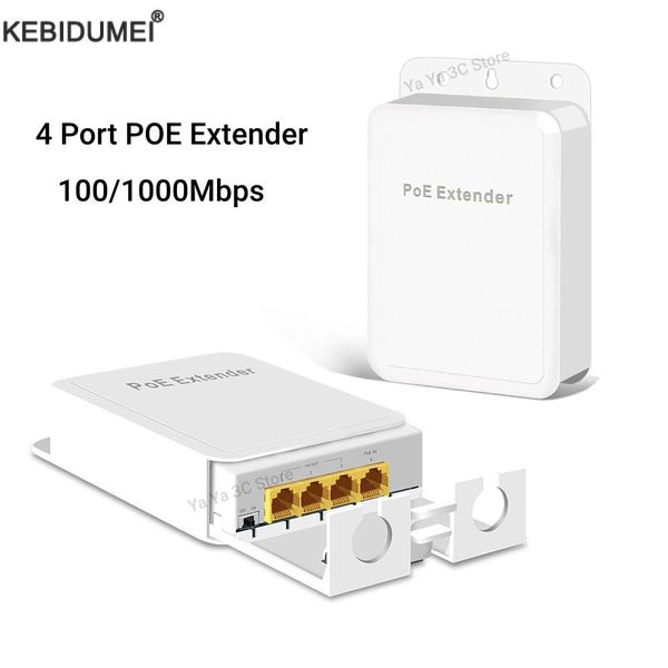 4 埠 IP55 防水 POE 中繼器 100/1000Mbps 室外 1 分 3 網路交換器 PoE 擴充器適用於 POE 攝影機無線 AP