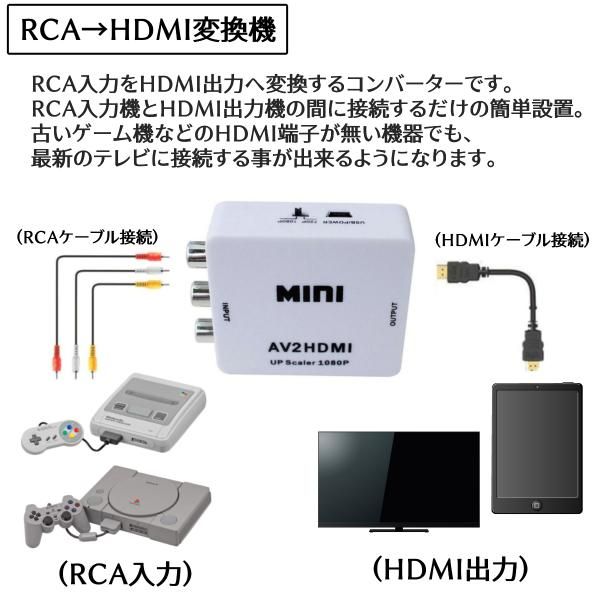日本から輸入——RCA HDMI 轉換器、切換器、轉換器、帶 USB 線供電、複合 AV2HDMI、RCA 至 HDMI 轉換適配器、轉換器、類比端子、電視、AV 線、