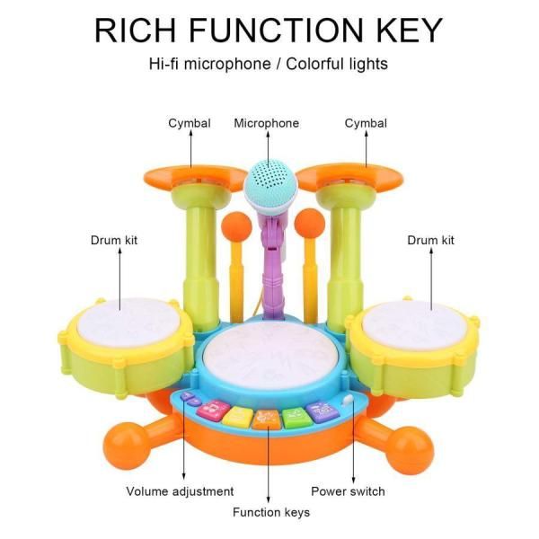 日本から輸入——兒童鼓,幼兒架子鼓嬰兒電動樂器玩具,帶鋼琴鍵,可演奏鼓聲,適合 3 歲以上男孩和女孩的聖誕禮物
