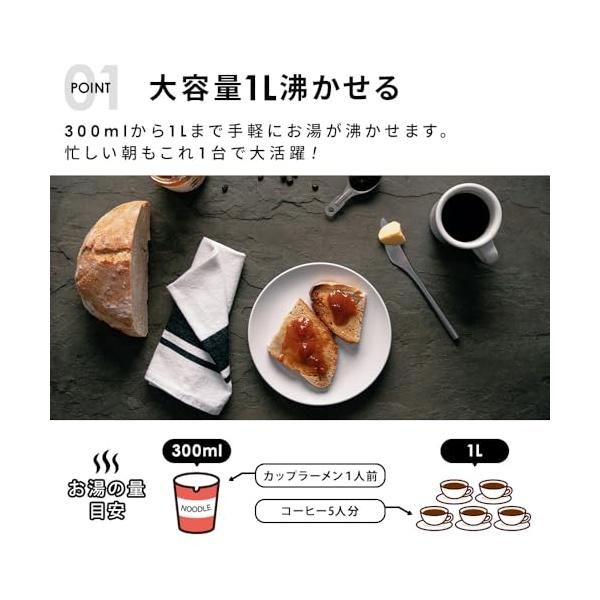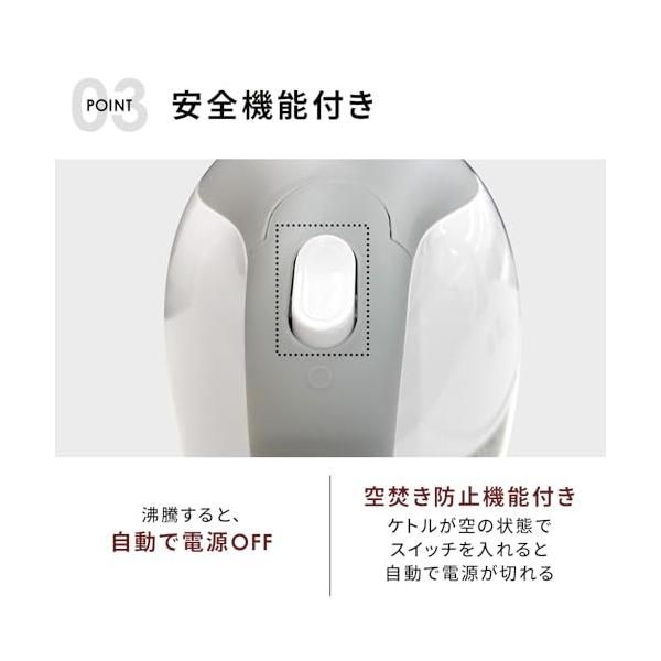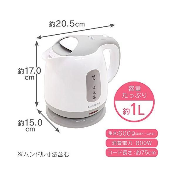這是一款環保無線電熱水壺,只有在您需要飲用時才會燒水。最大容量為1000毫升,因此您可以煮沸大量的水。它只需煮 300 毫升,因此您可以用它煮一份方便麵或五人份的咖啡。當熱水用完時,它會自動關閉,因此不會有溢出的風險。使用注意事項:本機不具備防止跌倒時漏水的功能。如果倒下,熱水可能會漏出來並造成燙傷。請安裝在兒童接觸不到的地方,以及電線不會被腳或身體其他部位纏住的地方。 - 壺體內沒有水時,請勿打開開關。否則可能會造成故障。 ・請勿煮水以外的任何東西。這可能會導致故障或污染。 -本產品不具備保溫功能,因此請在需要時僅煮所需的量。它具有時尚而簡約的設計。居家與廚房:家用電器:廚房電器:電熱水壺家居與廚房/家用電器/廚房電器/電熱水壺生態風格:僅在需要時燒水,僅在飲用時燒水! 尺寸:約。 W20.5*H17*D15cm(含手把尺寸) 重量:約。 600克(含電源空間) 顏色:灰色容量 :1.0L 最大容量為1000毫升,因此可以煮沸大量的水。它只需煮 300 毫升,因此您可以用它煮一份方便麵或五人份的咖啡。 居家與廚房:家用電器:廚房電器:電熱水壺