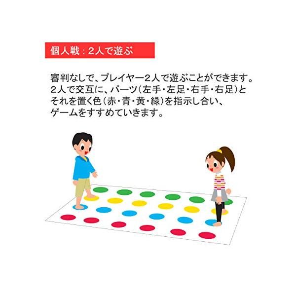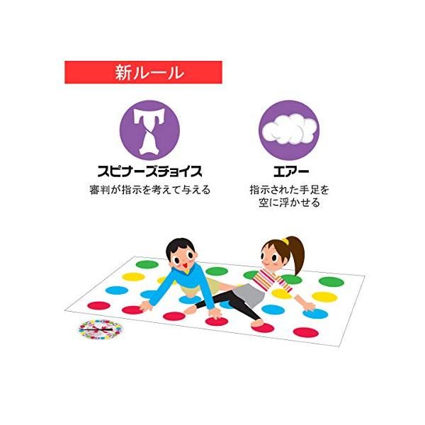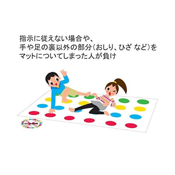 Twister 98831 [使用核心肌肉的平衡遊戲] 與家人、朋友、聚會等。按照指示操作,將您的手臂和腿放在紅色、藍色、黃色和綠色的圓圈內。這是一款簡單的體力遊戲/運動遊戲,需要平衡感。 [簡單的規則意味著您可以與任何人在任何地方玩]如果您不遵守裁判的指示,您的膝蓋或肘部碰到墊子,或者您摔倒,您就輸了。最後留在墊子上的選手就是勝利者。 令人興奮的新規則:規則中增加了“空中”規則,其中指定的肢體保持在空中,以及“旋轉者的選擇”規則,其中裁判可以想出並發出獨特的命令。這是一款令人興奮的派對遊戲玩具。 ・[兒童派對遊戲] 可以作為家庭遊戲來享受。推薦作為 6 歲兒童的玩具。年齡:6 歲以上 / 玩家人數:2 人或以上 ・2018 Hasbro。版權所有。