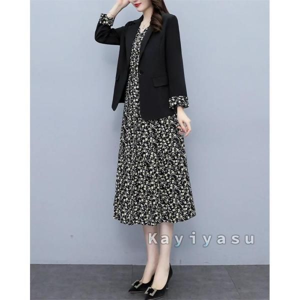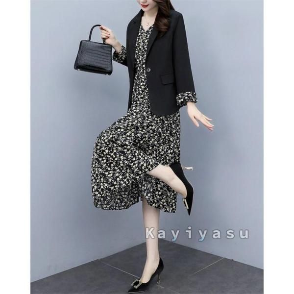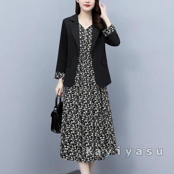 日本から輸入——女士連身套裝、兩件套、剪裁合身的夾克、長袖、時尚、辦公室女士、通勤、修身、花卉印花、單件套裝、正式、媽媽套裝、畢業典禮、結