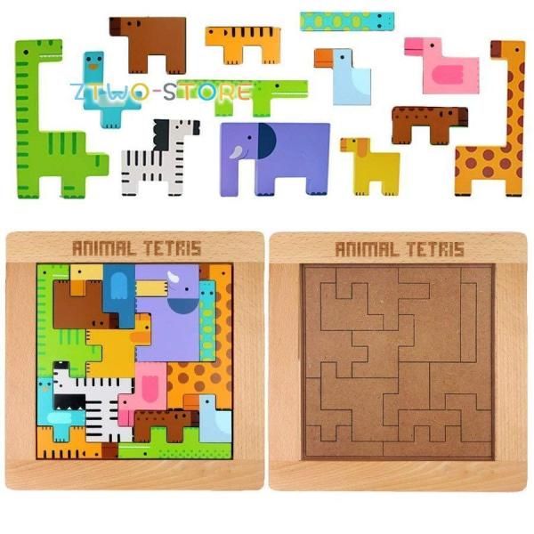 日本から輸入——Mokkansha 動物俄羅斯方塊 動物積木 益智玩具 木製拼圖 木製俄羅斯方塊動物拼圖套裝 組裝木製玩具 Zent
