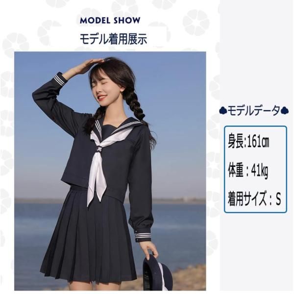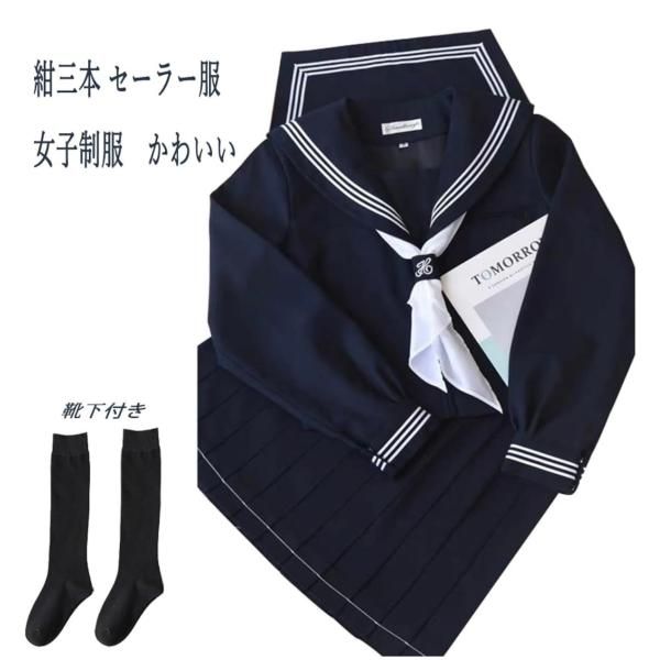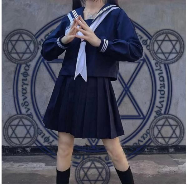 日本から輸入——水手服 cosplay 高中女生 校服 5xl 學生服 短袖 藏青色三線服裝 4件套 水手服 長袖 上下裝 前開襟 國中生 學校 萬聖節 化裝舞會