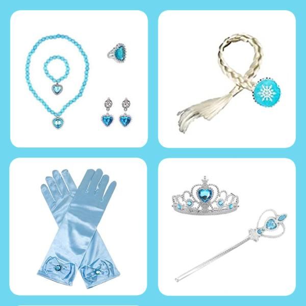 日本から輸入——艾莎連身裙兒童角色扮演服裝豪華9件套裝(公主裙、手套、頭飾、棍棒、假髮等)100 110 120 130 140 CREDIBLE