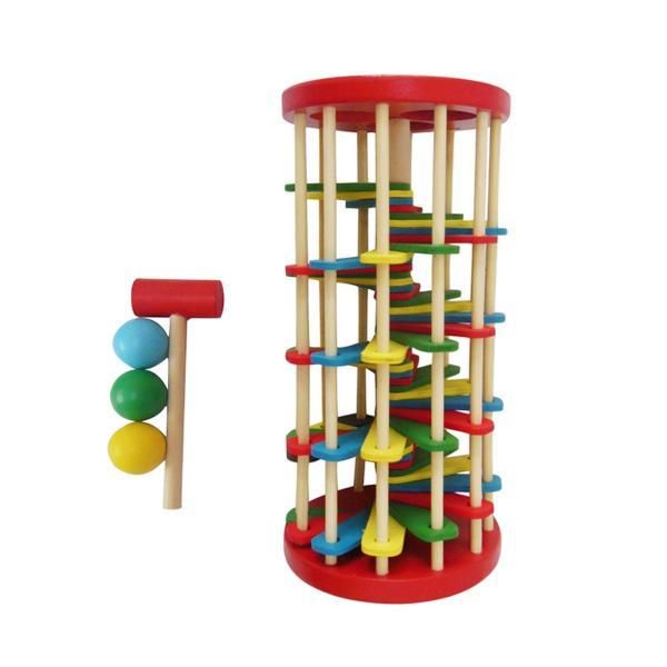 日本から輸入——木製落球玩具敲球梯教育配色蒙特梭利敲擊凳木槌適用於家庭辦公室