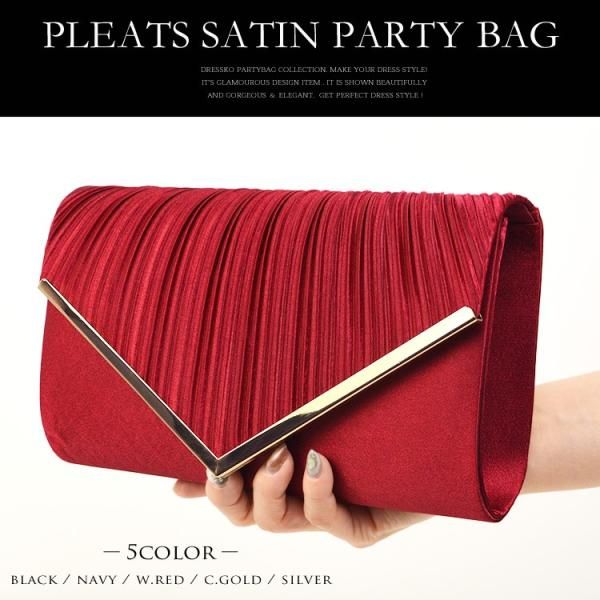 日本から輸入——派對包婚禮黑色手拿包婚禮包女士兩用銀色金色褶皺緞面手拿包單肩包平價品牌50多歲女性