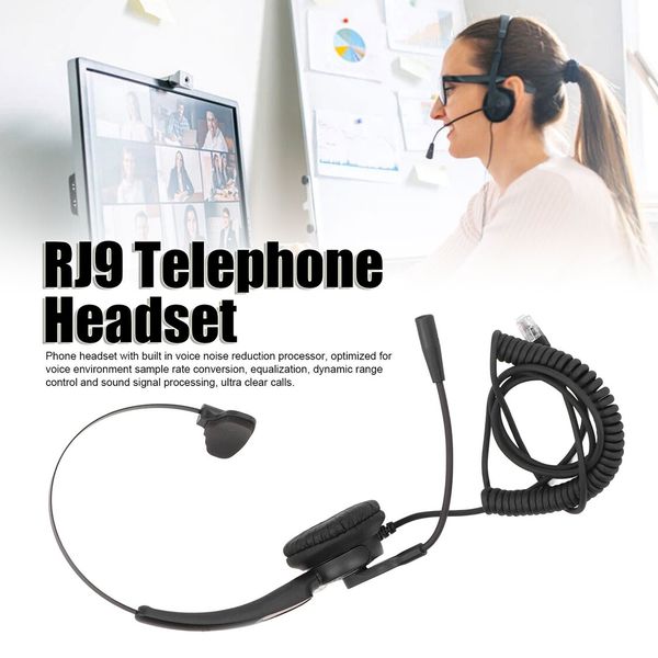 RJ9 電話耳機降噪單面彈簧線耳機附麥克風適用於辦公室呼叫中心