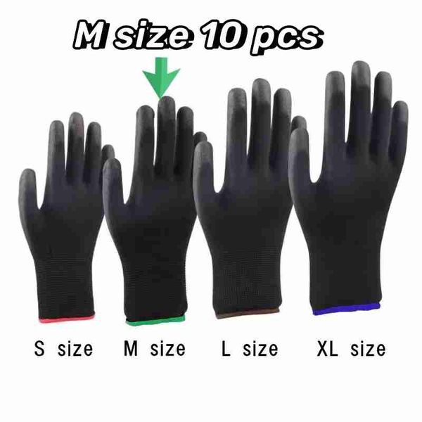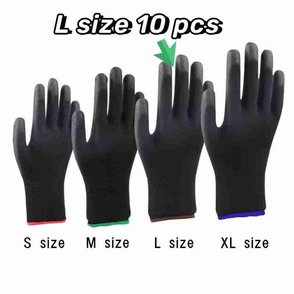 10雙/20只塗層尼龍PU工作手套安全防滑耐用塗層尼龍PU工作手套露營鎖邊顏色隨機
