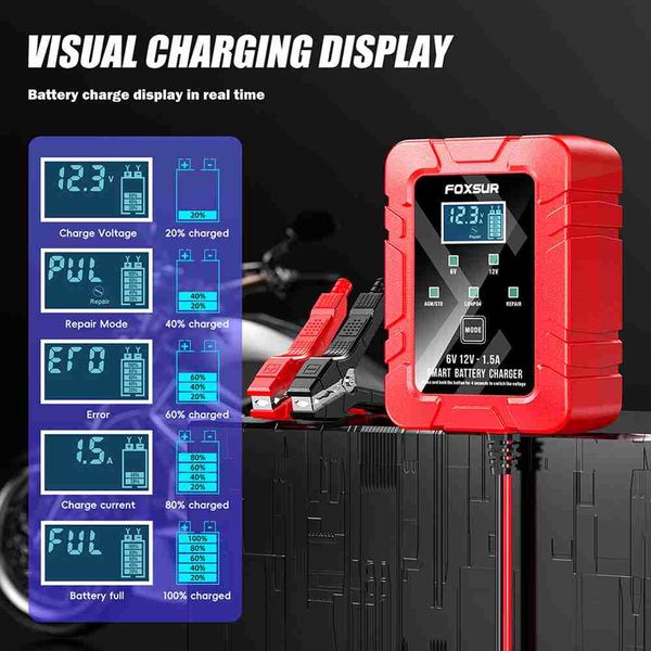 6V 12V 1.5安培智慧型汽車電池維護器電池涓流充電器維護器適用於房車卡車摩托車AGM鉛酸LiFePO4