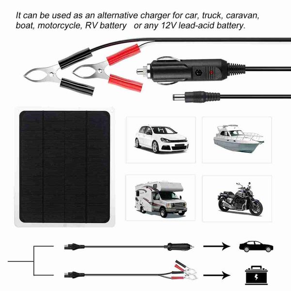 升級版太陽能電池涓流充電器維護器 12V 便攜式防水太陽能板涓流充電套件,適用於汽車、摩托車、船舶、船舶、房車、拖車、動力運動、雪地摩托車