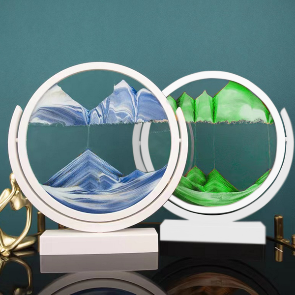 白色框可旋轉流沙畫藝術畫玻璃風景沙沙漏現代家居裝飾手工藝品禮品