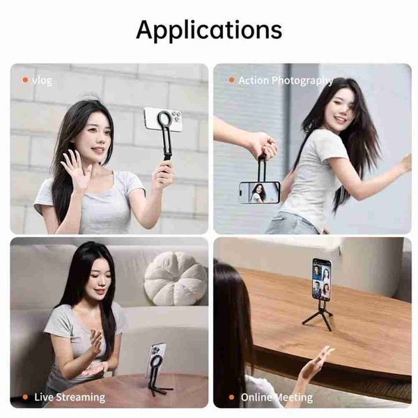 帶登山扣的磁性手機三腳架便攜式雙面手機支架桌面安裝自拍手柄支架適用於 iPhone 15/14 ProMax