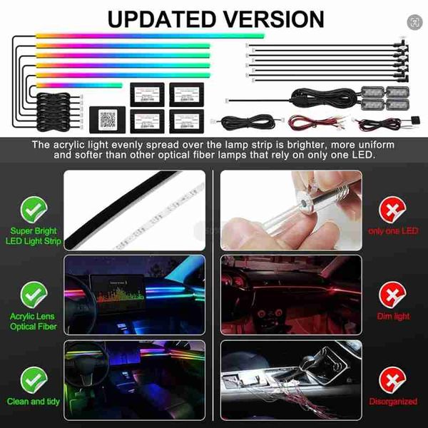 22合1 64色RGB幻彩汽車氣氛燈內裝壓克力導光LED燈帶裝飾氣氛燈APP控制