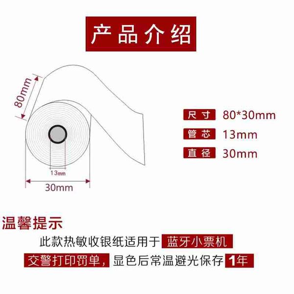 10卷小卷熱感紙捲 80x30毫米 列印紙 熱感式收據紙捲 適用於手持POS機