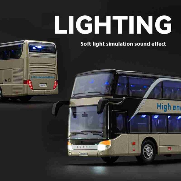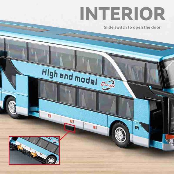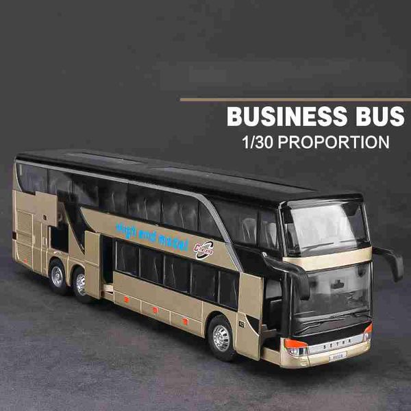 大號兒童玩具雙層巴士模擬合金模型長途客車商務巴士玩具車禮物擺飾