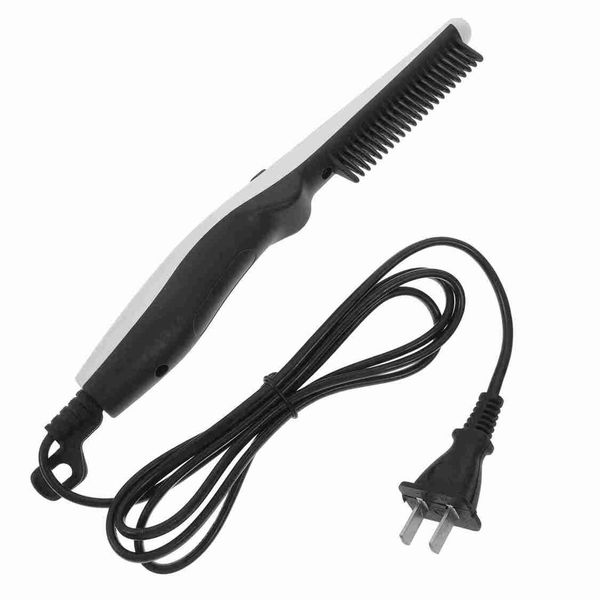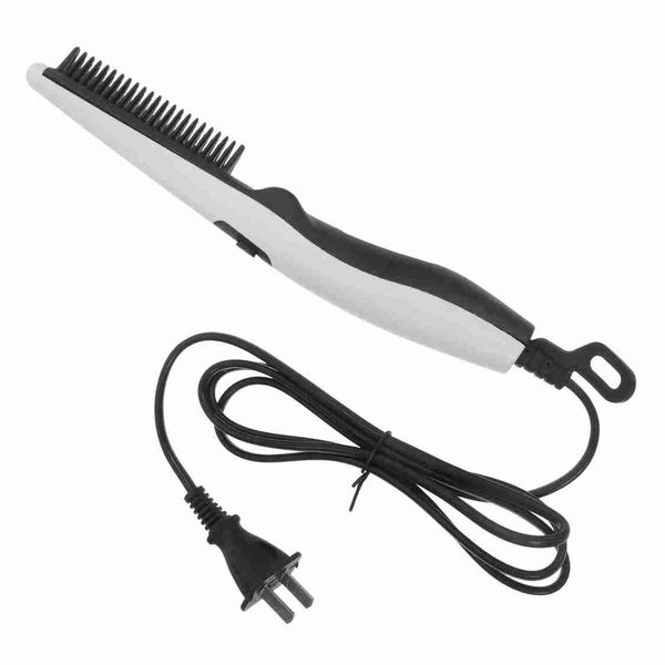 電動鬍鬚梳直髮梳便攜式男士直髮器白色短款加熱梳防毛躁順滑