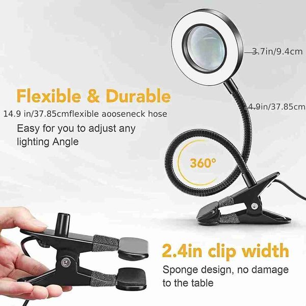 5倍放大檯燈 LED 照明放大鏡 3色 LED 放大鏡 適用於烙鐵維修/製程/嗜好/美甲