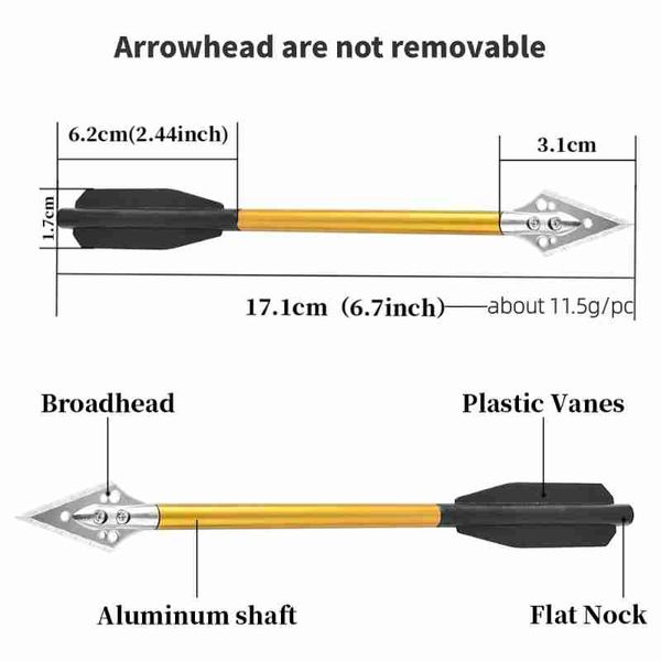 Material:Iron Arrowhead + Aluminum Alloy Arrow Shaft + Plastic Nock