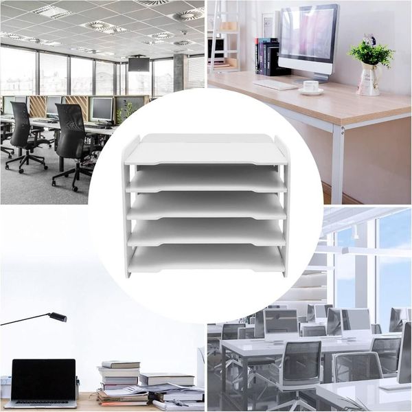 10 文件整理器 5 層木質桌面整理器 紙張存放 信件托盤 文件分類器 適用於家庭辦公室學校