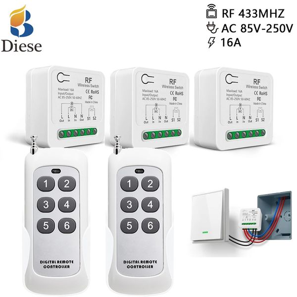 Diese 無線遙控智慧燈開關 AC 110V 220V 240V 16A 繼電器接收器相容於牆壁照明開關