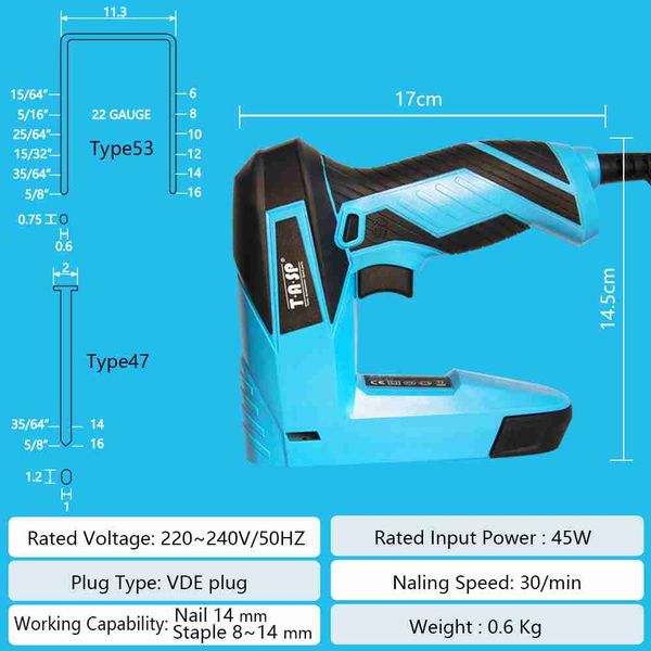TASP 230V 電動訂書機家具建築釘槍釘槍 14 毫米訂書釘和釘子電動工具適用於家庭裝潢 DIY