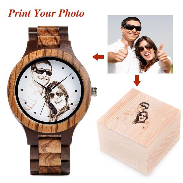 BOBO BIRD 印刷照片 Relogio Masculino 客製化標誌木質手錶帶禮品盒木盒直銷情人節