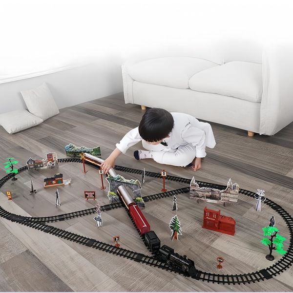 兒童電動蒸汽火車玩具軌道高鐵停車場模型家庭團聚派對遊戲男孩動車組生日禮物