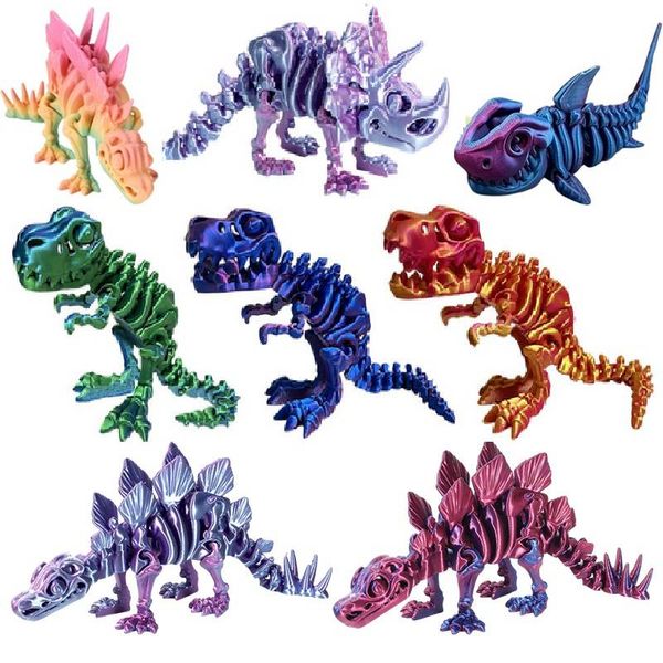 3D列印動物三角龍霸王龍鯊魚柔性龍模型擺飾可動龍模型桌面工藝禮品