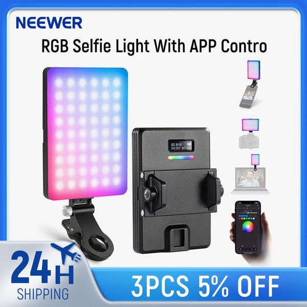 NEEWER RGB 自拍燈帶 APP 控制 94 LED CRI97 2000mAh 可充電會議燈帶冷靴座通用
