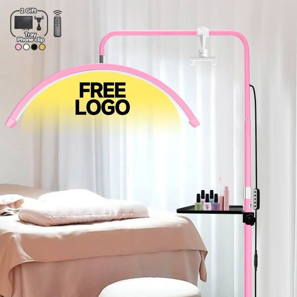 免費 LOGO 45W 23 吋 2025 全新高品質半月形攝影燈 UV LED 落地燈 附手機支架 適用於指甲睫毛