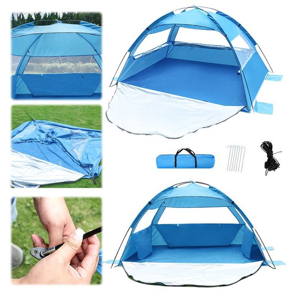 可容納 2-3 人的沙灘帳篷,易於搭建,遮陽棚,有 3 個網狀窗戶,適合戶外露營釣魚的沙灘遮陽帳篷