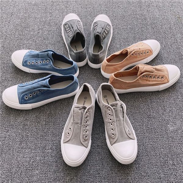 男女休閒鞋帆布鞋水洗韓版韓國懶人做舊柔軟舒適布鞋老爹鞋經典低筒情侶