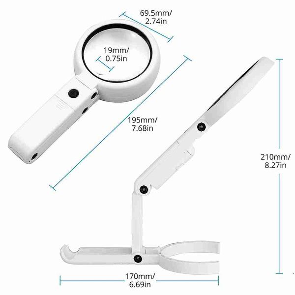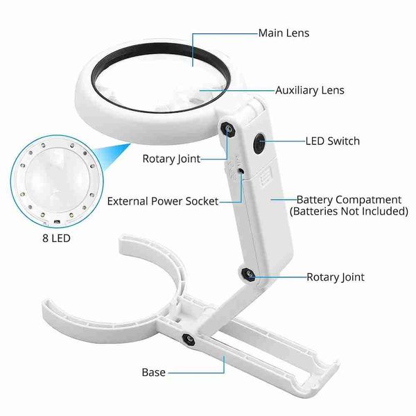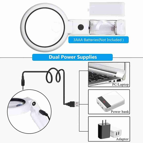 手持放大鏡 11x 5x 桌面可折疊 LED 燈免持照明桌面放大鏡,適用於閱讀、珠寶鑑定