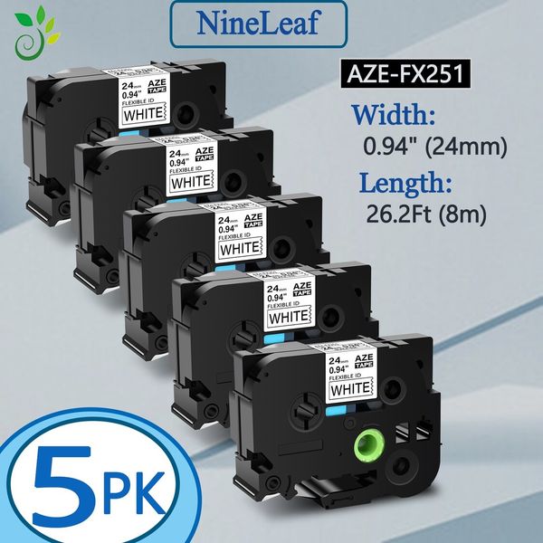 5PK 標籤帶 24 毫米 相容於 Brother TZe-FX251 柔性 ID 層壓黑白盒式磁帶 適用於 P-Touch 標籤印表機