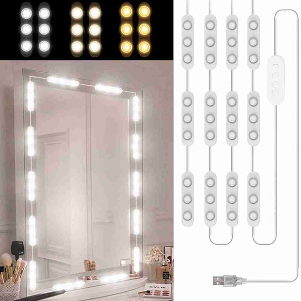 10 英尺 LED 梳妝鏡燈 3 種色溫 USB LED 化妝燈帶可調光柔性 LED 燈帶防水適用於化妝梳妝台和浴室鏡