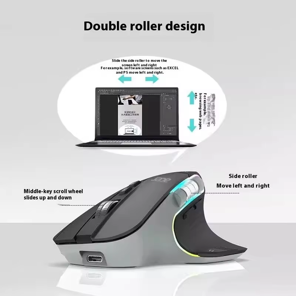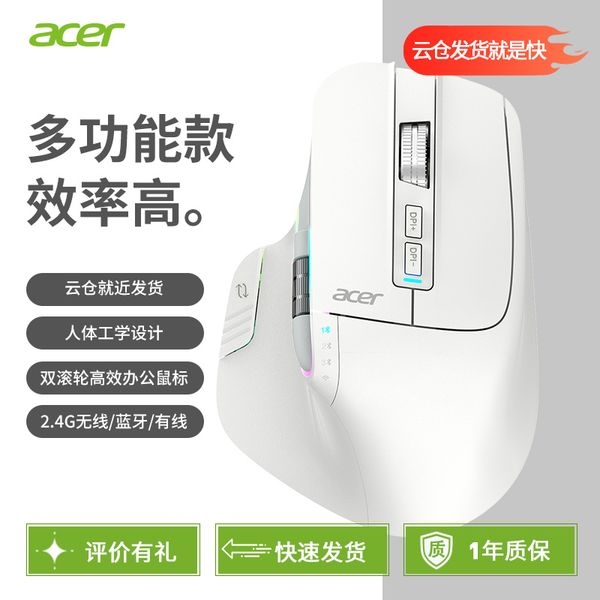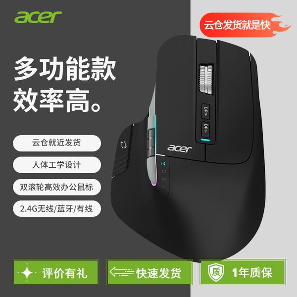 Acer Omr225 三模式遊戲滑鼠 藍牙無線滑鼠 自訂程式設計 雙滾輪遊戲滑鼠 人體工學滑鼠 辦公室滑鼠
