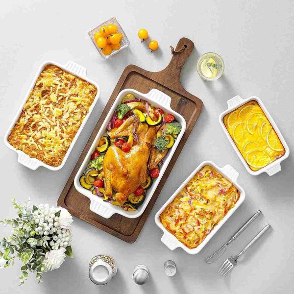 烤箱砂鍋、瓷質烤盤、陶瓷烤盤 4 件套