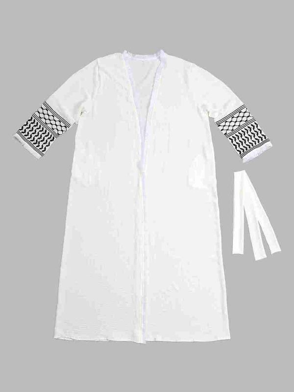 穆斯林服裝女式阿巴亞刺繡披肩長袍可拆邊遮身全身傳統伊斯蘭教齋月祈禱服